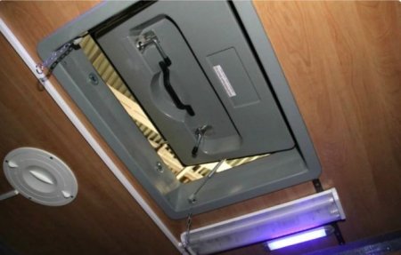 В потолке - откидной люк в качестве аварийного выхода.