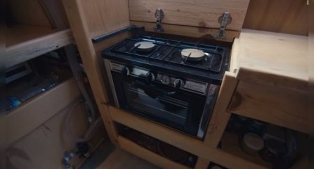 Также в автодоме есть дровяная печь с выносом наружу. Она