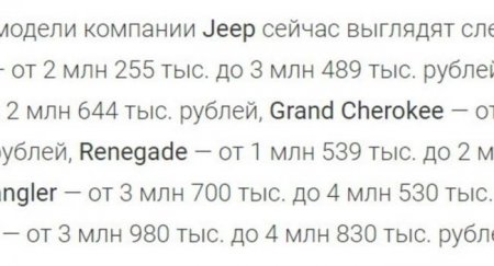 млн рублей, а самая дорогая Wrangler Unlimited - в 4,8 млн