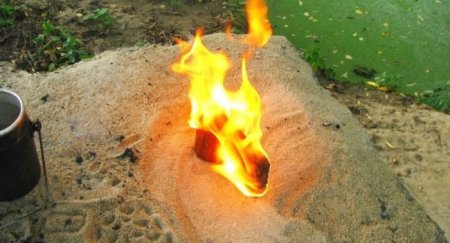работы такой горелки прост. Ее поджигали, ставили сверху ведро