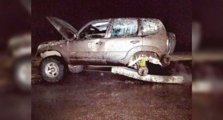 Снимок Chevrolet Niva, у которого вместо колеса было
