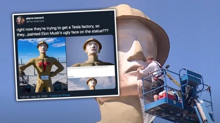 Жители американского города Талсы в штате Оклахома очень хотят, чтобы у них предприниматель и миллиардер Илон Маск построил новый завод по производству электромобилей Tesla. Поэтому люди решили привлечь внимание Маска, нарисовав его лицо и логотип компании на гигантской знаменитой статуе Золотого бурильщика, пишет Jalopnik.