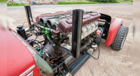 попал хоть и старый, но работающий двигатель от танка Т-55. Именно