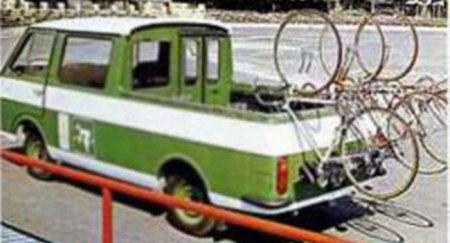 велосипедные гонки. Пикап РАФ-2909 имел платформу, перевозящую