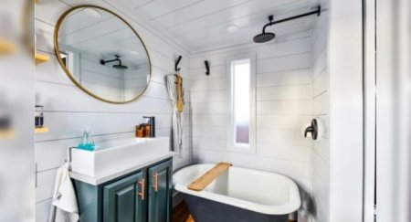 комната и ванная находятся на первом этаже, а вот второй ярус