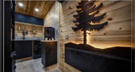 Установлен он на двухосный прицеп, отделка выполнена из кедра