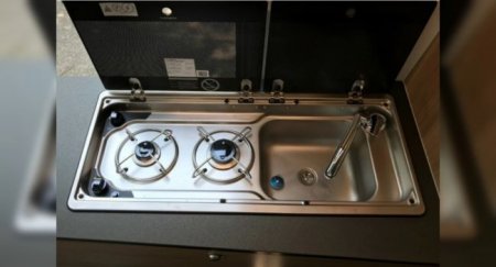 борту установлена небольшая кухня с газовой плитой на две горелки,