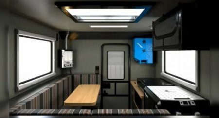 вариант интерьера и расположения мебели внутри жилого модуля.