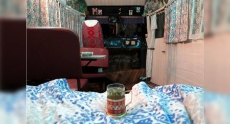 импровизированная гостиница на колесах, стоящая на приколе в