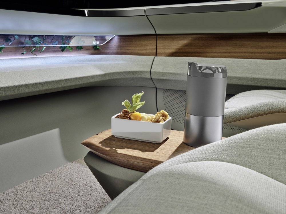 Ещё одна интересная «фишка» – магнитная посуда: чашки и тарелки прилипают к поверхности столиков (один из них установлен вместо руля) и таким образом страхуются от несанкционированных перемещений по салону во время движения. Понятно, что супчик или кофе выплеснутся при резких разгонах и торможениях, но их, по задумке разработчиков, не должно быть в принципе: подразумевается, что беспилотники будут ездить исключительно плавно, на скоростях не более 70 км/ч.