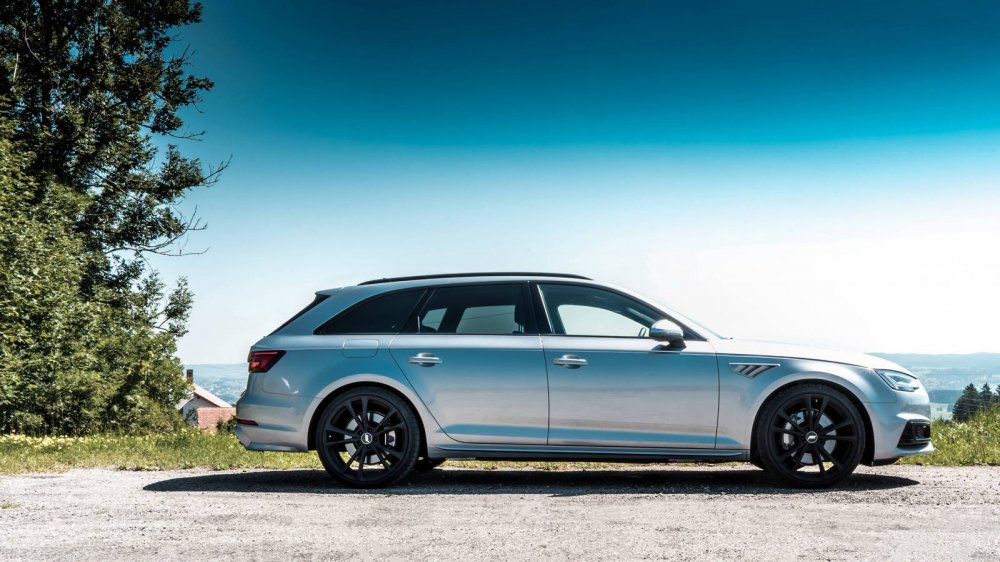 Кроме того, специалисты ABT могут оснастить Audi A4 Avant коиловер-подвеской, что позволяет занизить автомобиль на 15-40 мм. Есть и набор фирменных аэродинамических элементов, включая переднюю юбку, дополнение на радиаторную решетку и вставки в крылья. Они могут быть изготовлены из ABS-пластика или с покрытием «под карбон». Для версий с пакетом S line доступна также задняя юбка и глушитель с четверкой 84-миллиметровых хромированных патрубков.