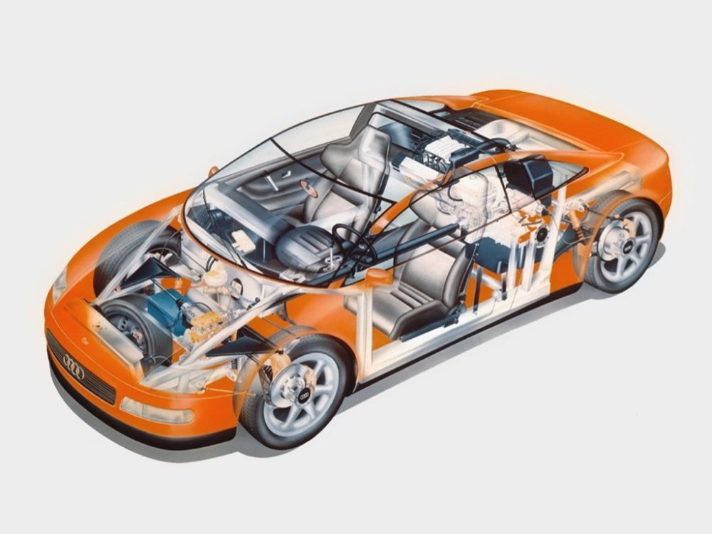 Однако исторические мотивы не помешали «Авусу» выглядеть ультрасовременно – даже спустя три десятилетия этот концепт не выглядит устаревшим! Именно на этой модели конструкторы обкатывали пространственную алюминиевую конструкцию, известную под фирменным названием Audi Space Frame.