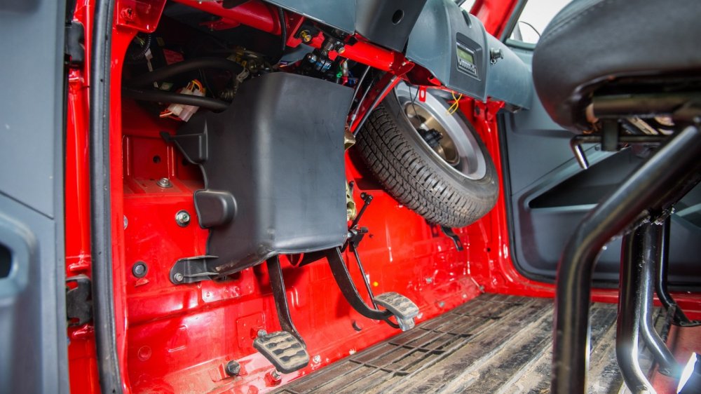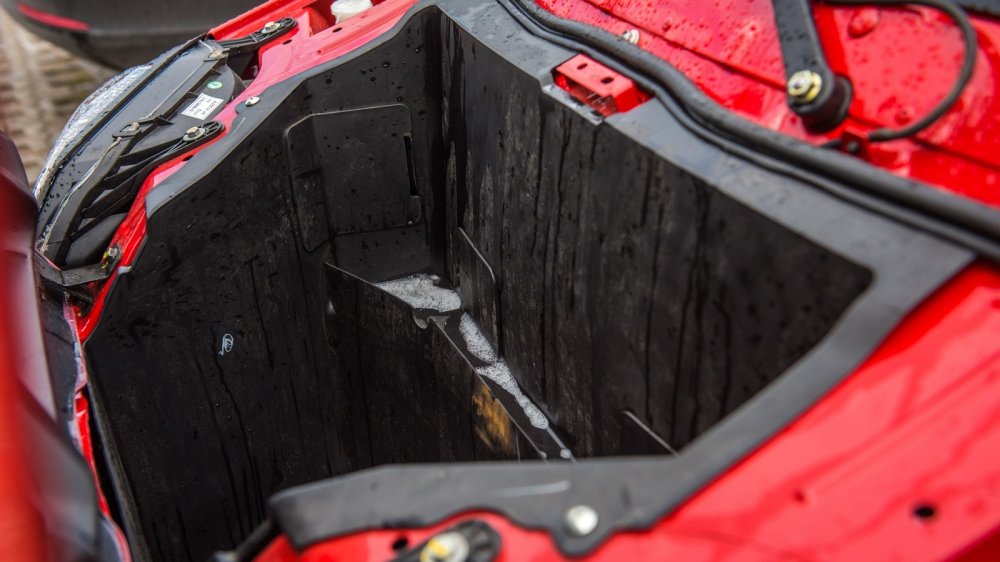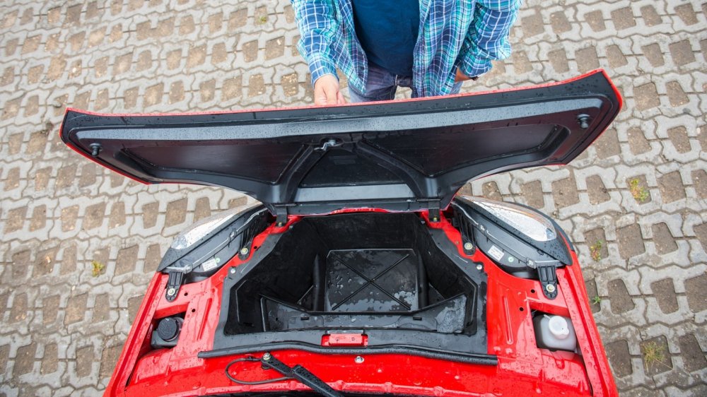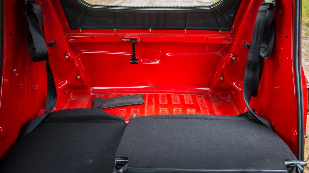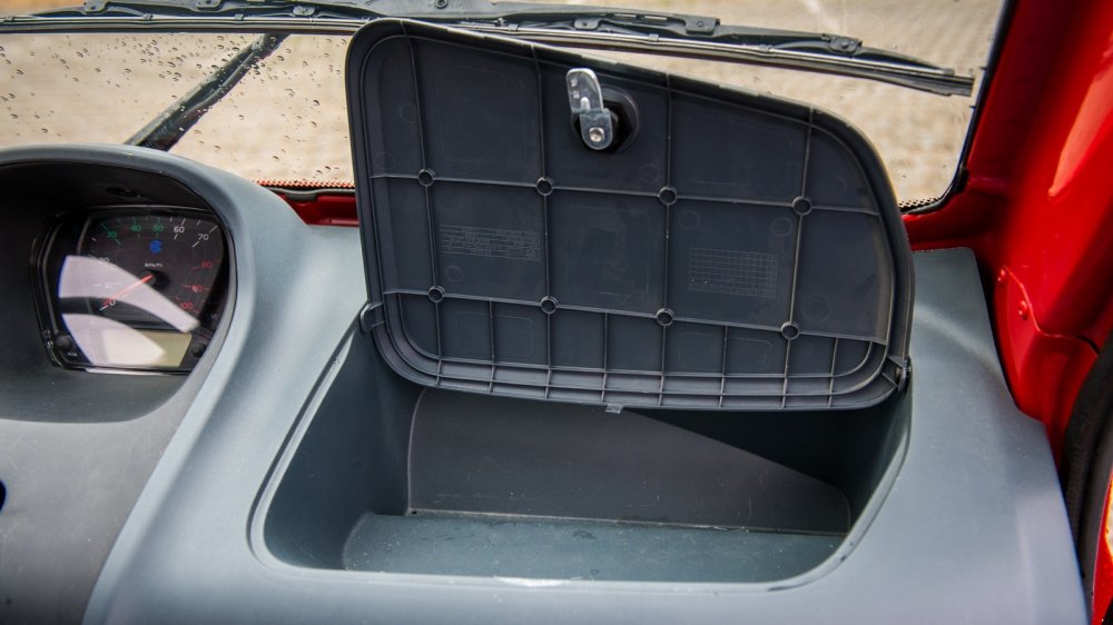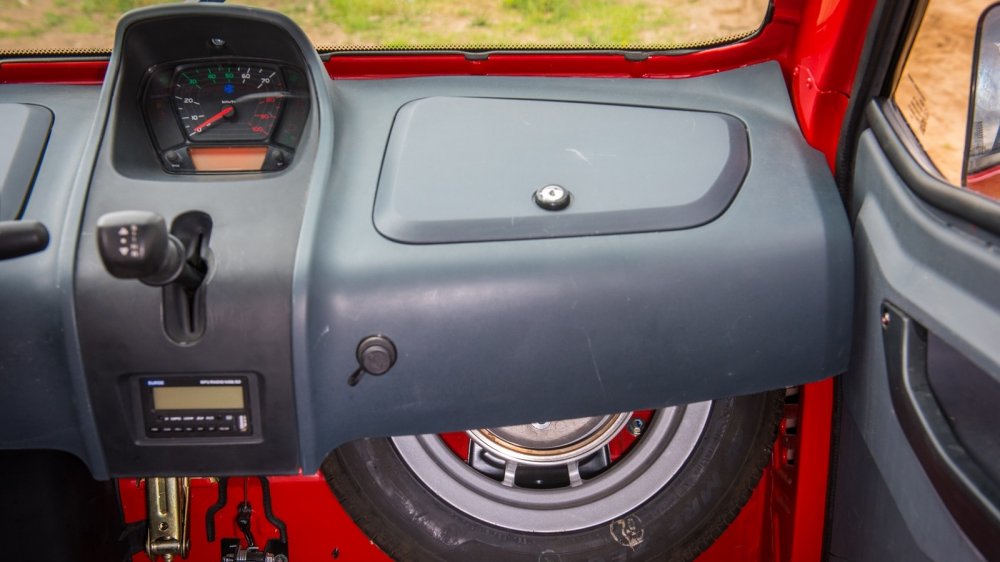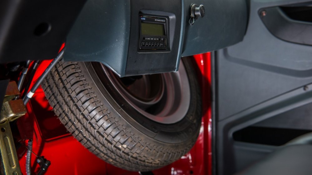 В багажнике на лежачих полицейских что-то душераздирающе громыхает. Вроде бы тут и багажника-то нет! А грохот есть – и такой, что кажется, мотор выпал на асфальт. Детальное изучение показало: багажник есть. Чтобы в него попасть, нужно откинуть спинки пассажирского ряда сидений, которые запираются на «шпингалеты». В утлом закуточке за спинками прямо на железном полу лежит никак не закрепленный дорожный набор – домкрат, баллонный ключ и какие-то минимальные инструменты. Вот они-то и громыхают на каждой кочке. По-хорошему, надо бы придумать, как их закрепить – иначе все уши прозвенят, да и дерматиновый чехол инструментария очень быстро придет в негодность. Заводом же никаких кронштейнов не предусмотрено.