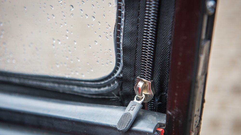 Машина, как мы уже говорили, не имеет дверных замков. Вернее, таковые в конструкции имеются, но приводятся в действие только изнутри (видимо, чтобы жулики не таскали сумочки на ходу). Но даже если бы замки были, окна на «молниях» делают их функцию номинальной. Собственно, замки вместе со стеклами планируют в качестве «русского пакета», но на нашей машине из этого набора был только русский госномер.