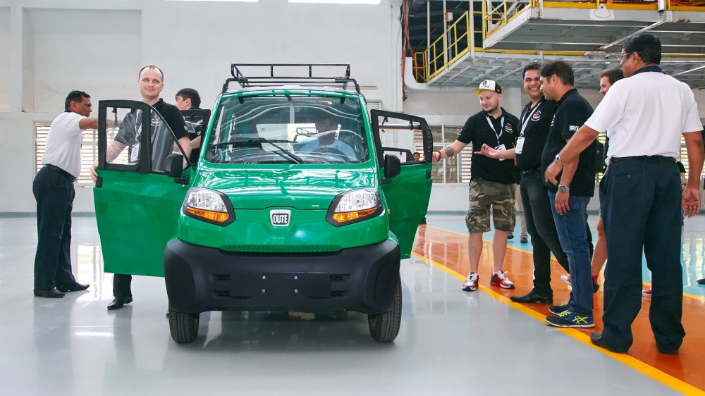 Первым из «квадрициклов», пришедших на российский рынок, стал индийский Bajaj Qute. Нам его удалось протестировать на его родине – в индийском городе Пуна, прямо на территории завода, где их и собирают вместе с мотоциклами КТМ и Bajaj.