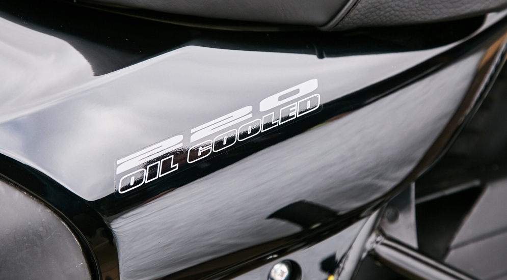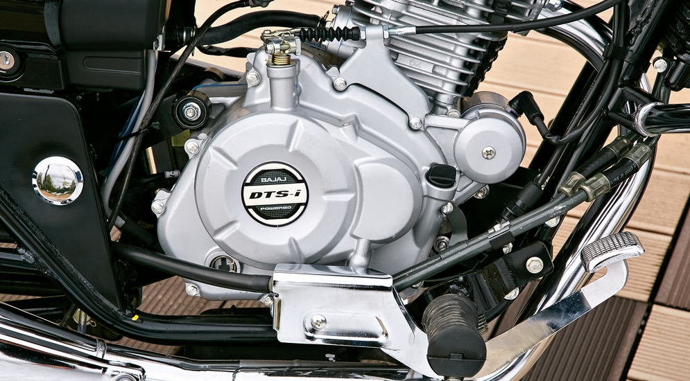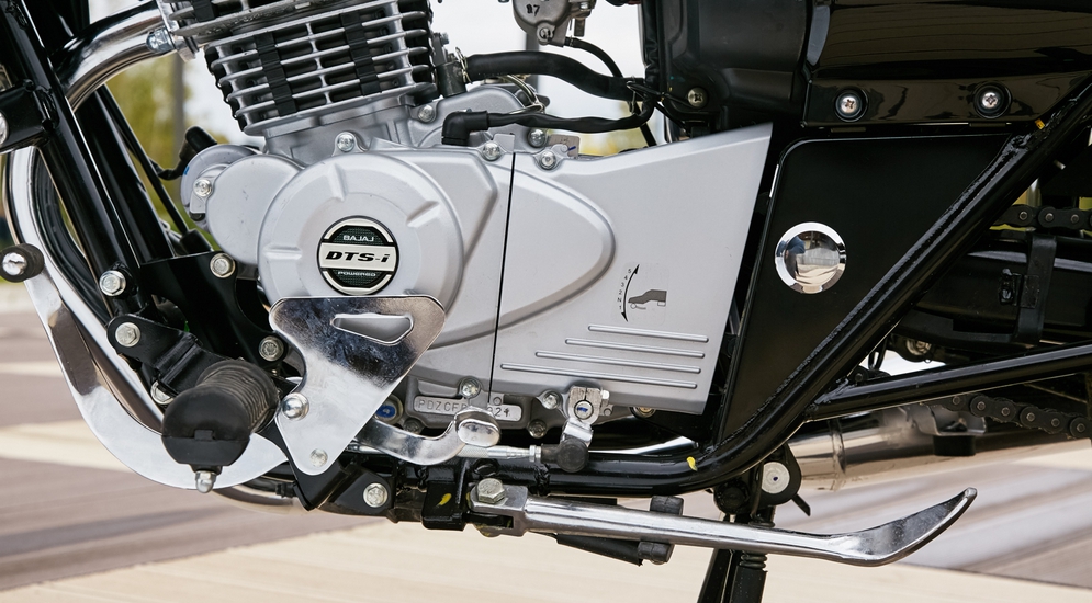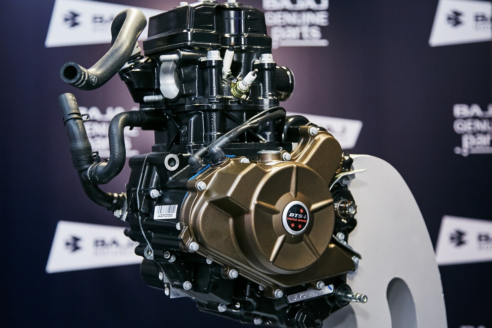 Индусы пошли еще дальше. Вместо «излишне» мощного и сложного двухцилиндрового мотора «воткнули» в раму свой силовой агрегат – топовый 220-кубовый двигатель 220 DTS-i, уже хорошо известный нам по мотоциклу Bajaj Pulsar. Главное отличие от мотора «Пульсара» – это то, что здесь использована воздушно-масляная система охлаждения вместо водяной. Да и от своего прародителя, двигателя Rotax, который ставится на KTM Duke 125-200, он отличается лишь двумя деталями – иным логотипом и собственной головкой цилиндра, знаменитой тем, что в ней использованы аж три свечи зажигания.