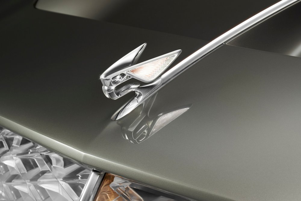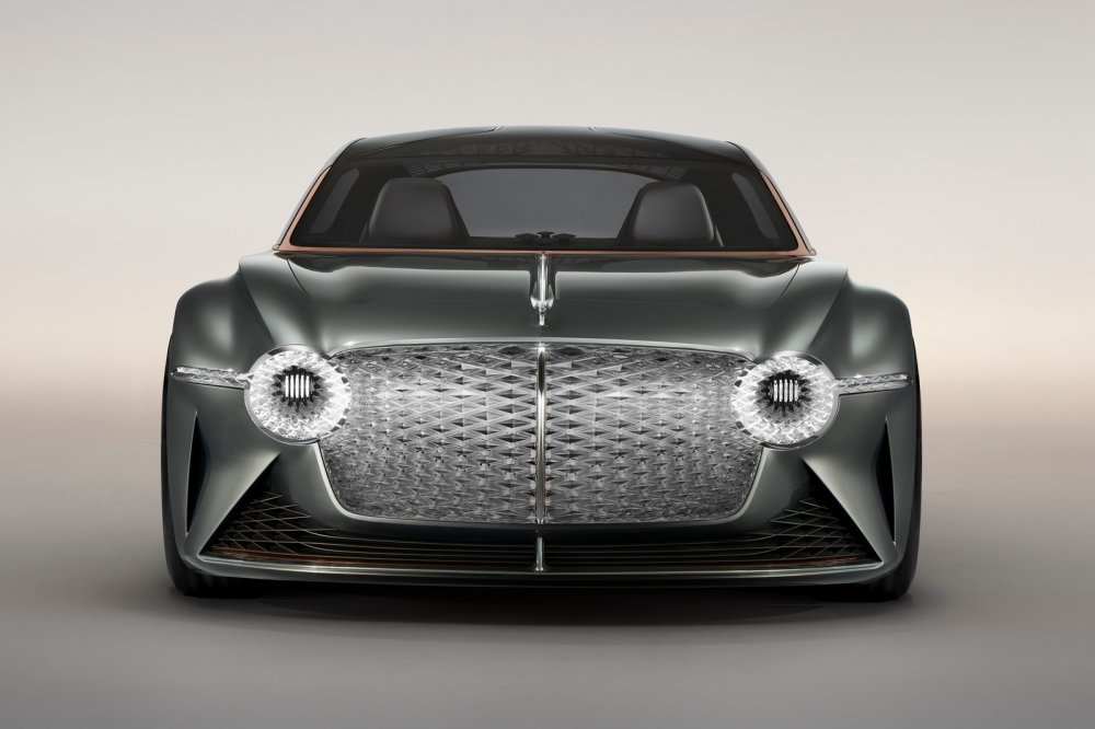 Снаружи, несмотря на странноватые пропорции, EXP 100 GT безошибочно идентифицируется как Bentley, особенно спереди, с ажурной, пронизанной светодиодными нитями фальшрадиаторной решёткой и круглыми фарами. Эмблема с «мигалкой» на капоте уже знакома нам по серийному седану Bentley Flying Spur нового поколения, дебютировавшему ровно месяц назад.
