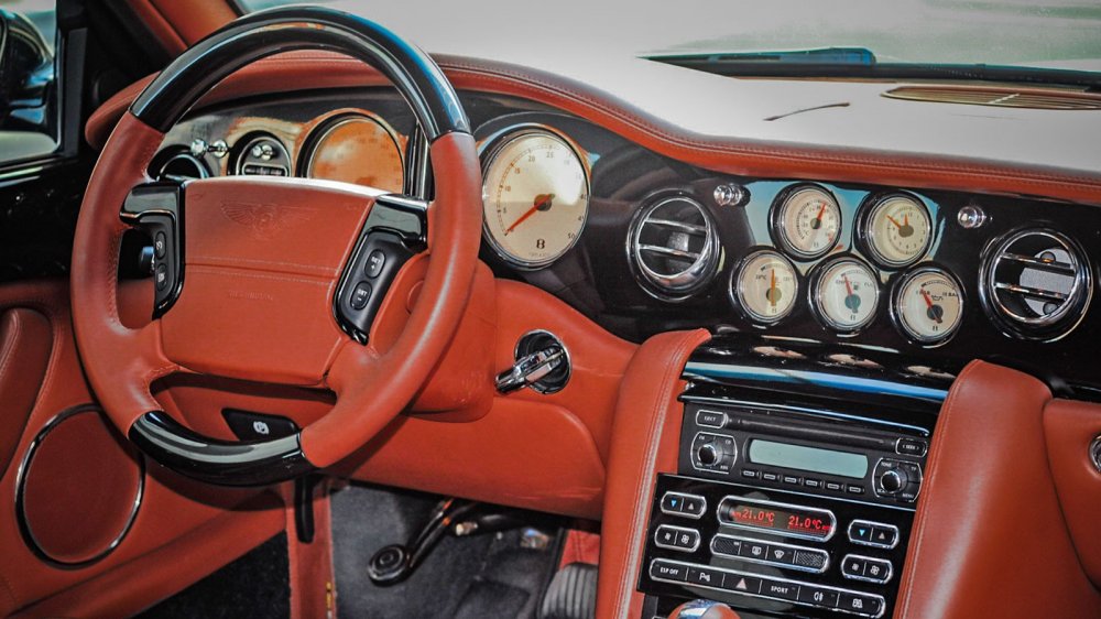 Классический интерьер ручной работы с массивной передней панелью ослепляет блеском чёрного дерева и пьянит ароматом рыжей кожи. От благородных материалов никуда не деться при всём желании. Кусок древесины, вживленный в переднюю панель, по ощущениям весит не меньше двух килограммов, а кожей Connolly покрыты даже потолок и солнцезащитные козырьки. Львиная доля фурнитуры — полированный металл, приятно холодящий руку. Каждый из многочисленных стрелочных приборов по красоте даст фору иным хронографам. Для того, чтобы отойти от культурного шока и перестать походить на попавшего в торговую галерею туземца, требуется не меньше десяти минут.