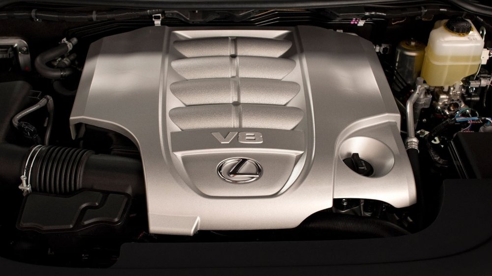 Этот собрат «двухсотки» получил пресловутый 5,7-литровый 3UR-FE с V-образным расположением восьми цилиндров и недвусмысленно хвастается этим в своем индексе. Не меньше он хвастается мощностью в 367 л.с., крутящим моментом в 530 Нм и богатым оснащением, помноженным на лощеную внешность. Однако есть у него и такие черты, которыми хвастаться прилюдно не станешь…