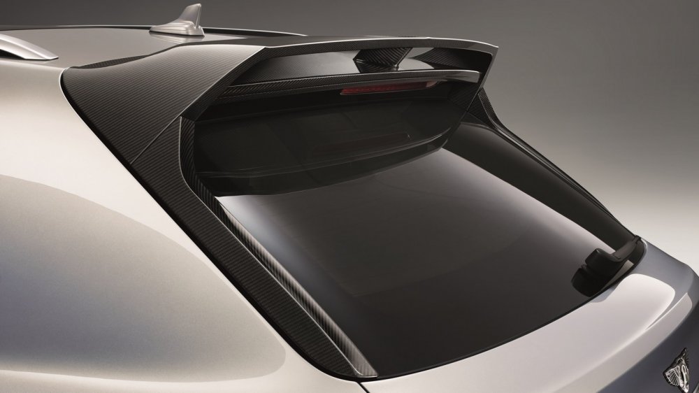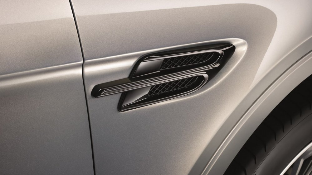 Кроме того, «черный» Bentayga укомплектован набором 22-дюймовых черных литых колес, черными патрубками выхлопной системы, а также карбоновыми элементами кузовного обвеса – передним сплиттером, боковыми накладками на пороги, задним диффузором и задним спойлером.