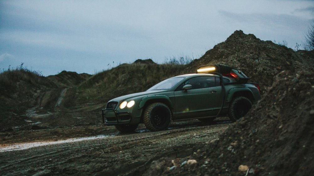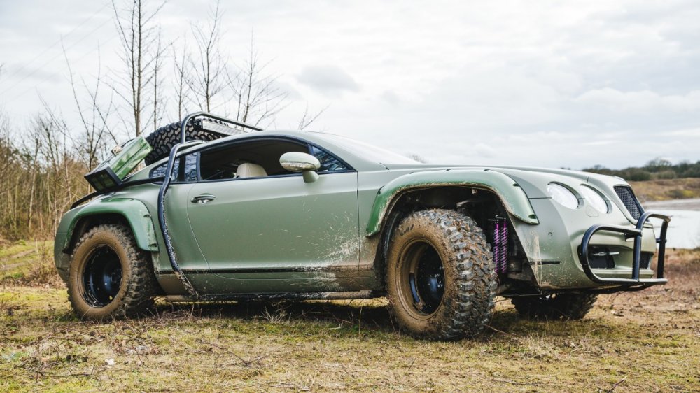 Проект с этим конкретным Bentley подразумевал создание «уникального внедорожника по мотивам Дакара». Кстати, спорткар сохранил свой оригинальный роскошный кожаный интерьер. В процессе модернизации автомобиль получил гоночные амортизаторы, 17-дюймовые стальные колеса, каркас безопасности, новые передние тормоза и защиту днища.