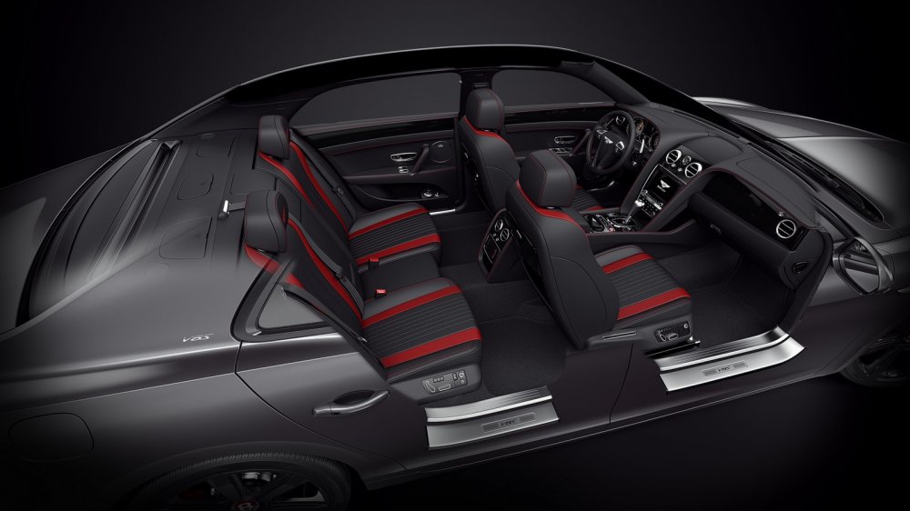 Автомобиль Flying Spur V8 S Black Edition тоже не остался без внимания дизайнеров. Он оформлен в одном тоне с крупными контрастными полосами в центральной части сидений и декоративной красной отделкой в виде тонкой линии по всему салону.