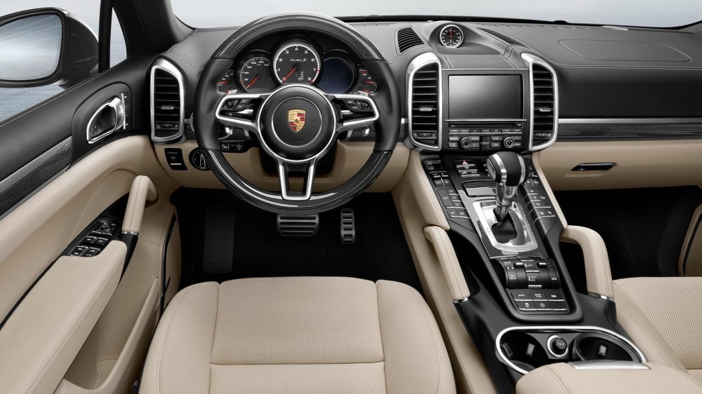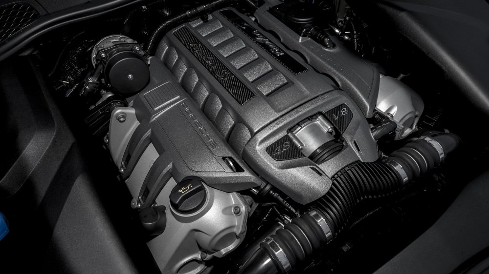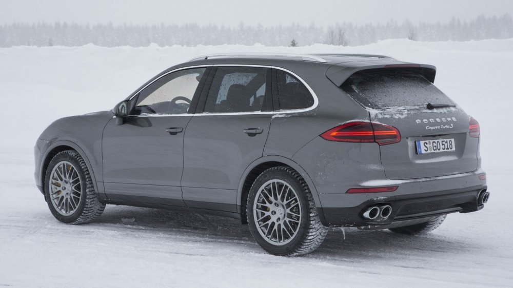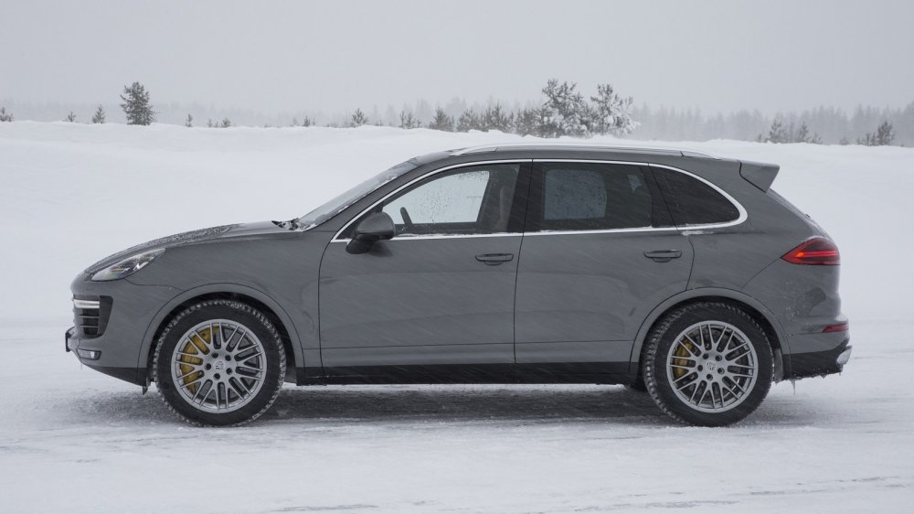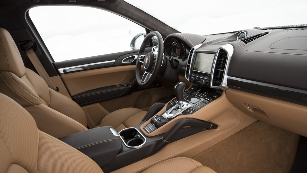 В таблице характеристик топ-версии Кайена мы видим точно такой же показатель времени разгона до сотни, что и у Бентайги — 4,1 секунды, при максимальной скорости «всего» в 284 км/ч. Цилиндров у битурбомотора здесь только восемь, но форсирован он сильнее, выдавая с литра рабочего объема около 119 л. с. против 102 л. с. у Bentley. В абсолютных цифрах двигатель слабее, но и сам Cayenne легче, благодаря чему удельная мощность составляет 255 л. с. на тонну, а крутящий момент — 358 Нм. Автоматическая трансмиссия — тоже восьмиступенчатая, но не ZF, а, что называется, конкурирующей фирмы, Aisin-Warner, несмотря на то, что бренды Bentley и Porsche нынче являются родственными. И система полного привода у Кайена тоже принципиально другая: постоянную связь с двигателем имеют только задние колеса, а на передние тяга передается при необходимости посредством многодисковой фрикционной муфты, управляемой электроникой. Наконец, только Porsche может похвастать активным задним дифференциалом, способным «подкручивать» то или иное колесо, что полезно как для управляемости, так и для проходимости.