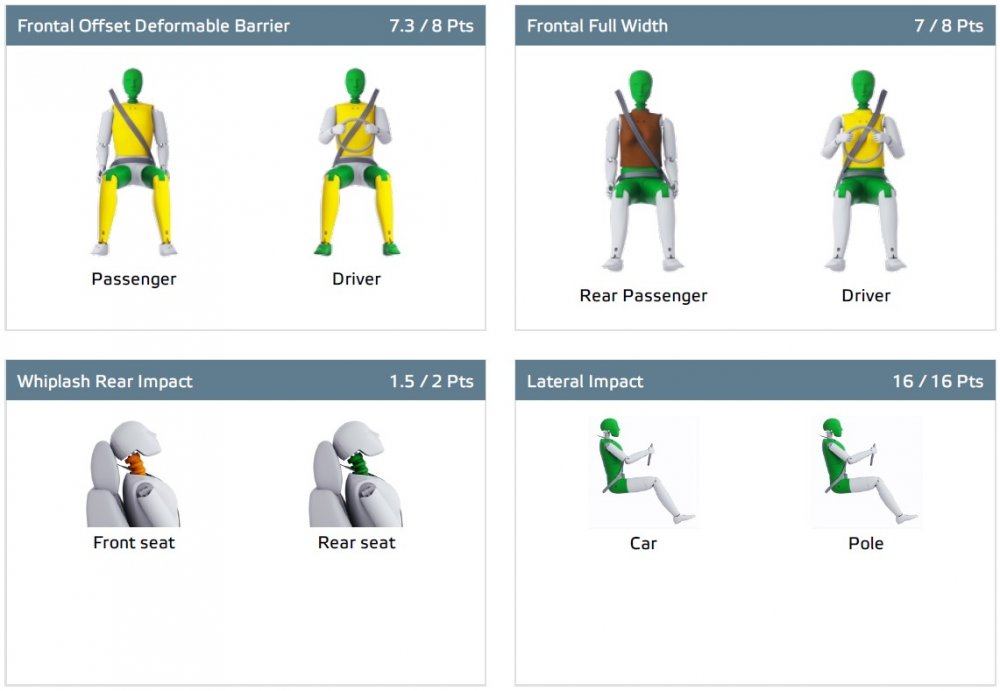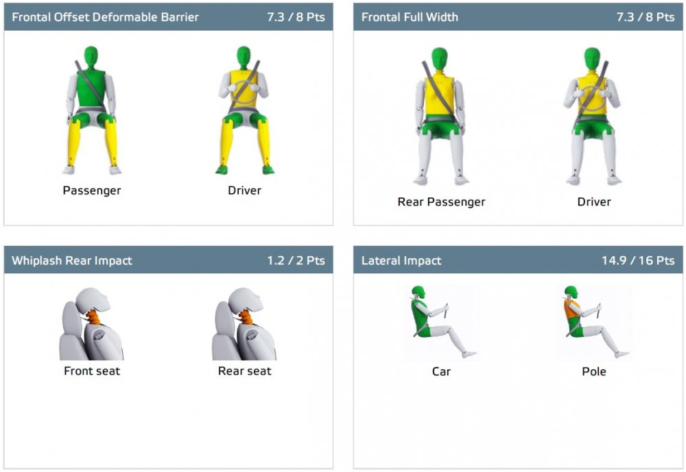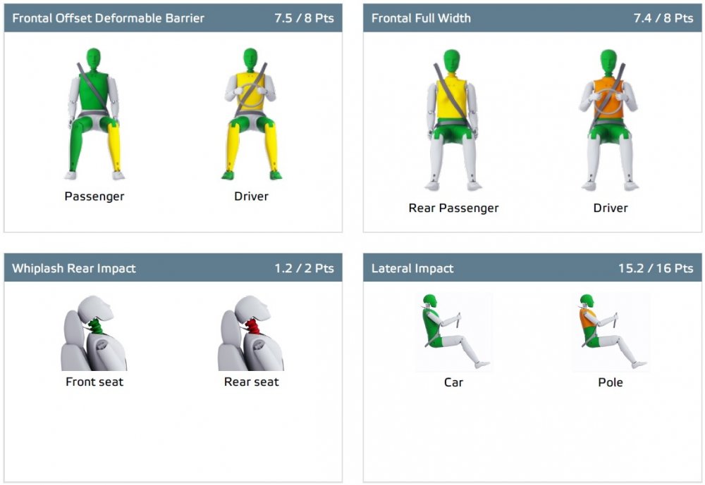 Новый Peugeot 208 на модульной платформе CMP заработал лишь четыре звезды итогового рейтинга. Замечания есть как к недостаточно усердной работе систем активной безопасности, так и к способностям кузова защищать людей. Пешеходам Peugeot 208 может причинить вред на уровне заметно более крупного Jeep Cherokee, а тем, кто находится внутри машины, стоит опасаться боковых ударов о столб: на груди водителя зафиксирован пограничный оранжевый уровень нагрузок. Такой уже уровень нагрузок испытала грудь водителя при фронтальном ударе о стену. Защита от хлыстовых травм на заднем сиденье была оценена как неудовлетворительная (красный уровень опасности) из-за отсутствия центрального подголовника в некоторых комплектациях.