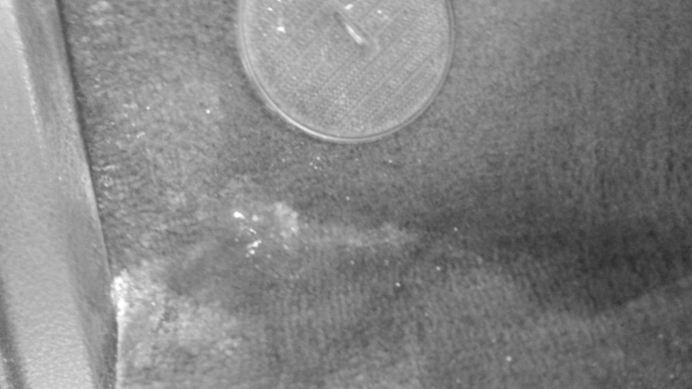 Тут он мокрый и даже немного заплесневел. Это может быть признаком того, что лопнул шланг подвода “незамерзайки” к заднему стеклу. Если она текла долго, то могут возникнуть проблемы и в электрике: электронные блоки, и в частности блок предохранителей в багажнике влажность не переносят.