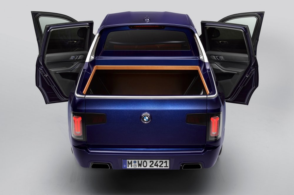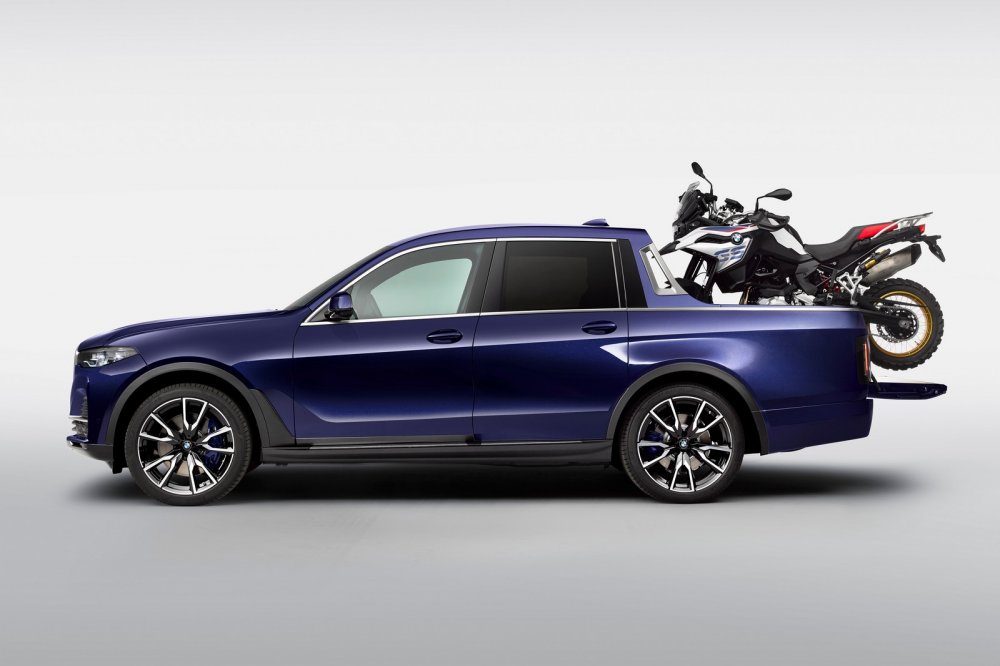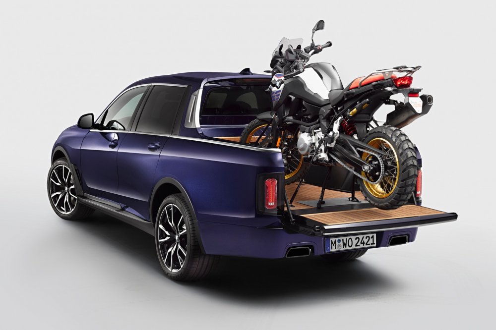 Компания BMW давно мечтает о собственном пикапе, но пока что дальше штучных внутризаводских прототипов на базе модели М3 дело не пошло, и X7 Pick-up – из той же оперы. Его создали 12 стажёров мюнхенского завода при поддержке отделов, отвечающих за концепт-кары и их воплощение в металле. На разработку грузовичка ушло десять месяцев, за основу был взят стандартный кроссовер X7 xDrive40i с 340-сильным бензиновым двигателем. В результате хирургической операции на корме автомобиль похудел на 200 кг и стал на 10 см длиннее. Для изготовления уникальных элементов оформления кузова и задней стенки кабины использован 3D-принтер.
