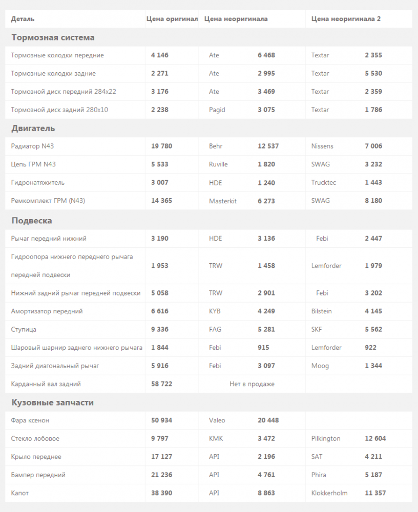Если всё подытожить, то получается, что маленькая BMW в обслуживании дешевле своих старших сестриц в основном за счет более бедных комплектаций и засилья 1,6-литровых моторов. В остальном она с ними вполне на одном уровне — что по качеству, что по стоимости обслуживания.