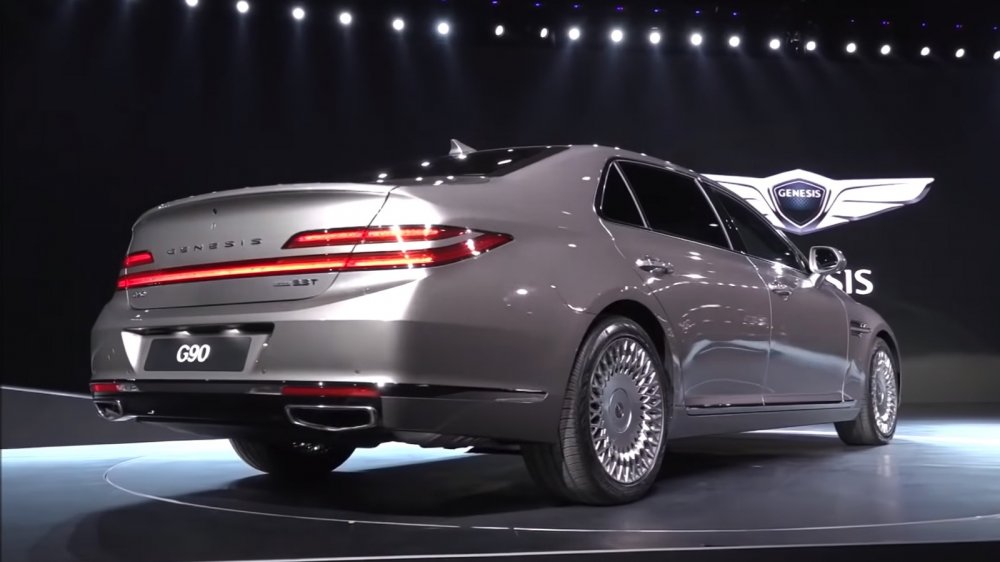 Следующим по алфавиту стал Genesis G90, который претерпел очень существенный рестайлинг, прежде всего, в плане внешности. Неделей ранее мы показали своё видение представительского седана, и в целом нам удалось передать основные мотивы обновления. При этом есть и различия в отделке переднего бампера, крыльев и крайних сегментов задних фонарей.