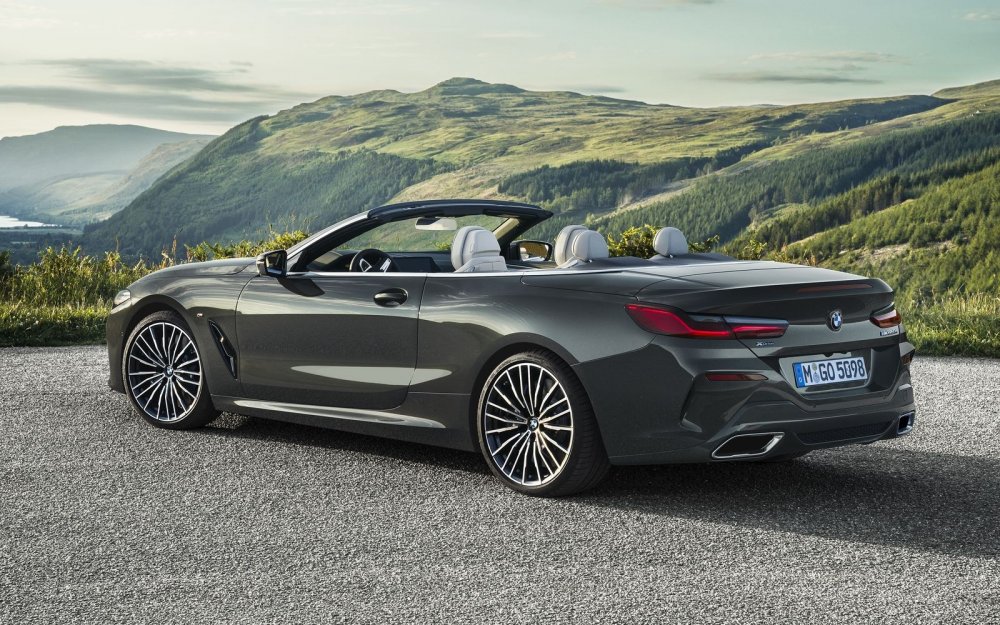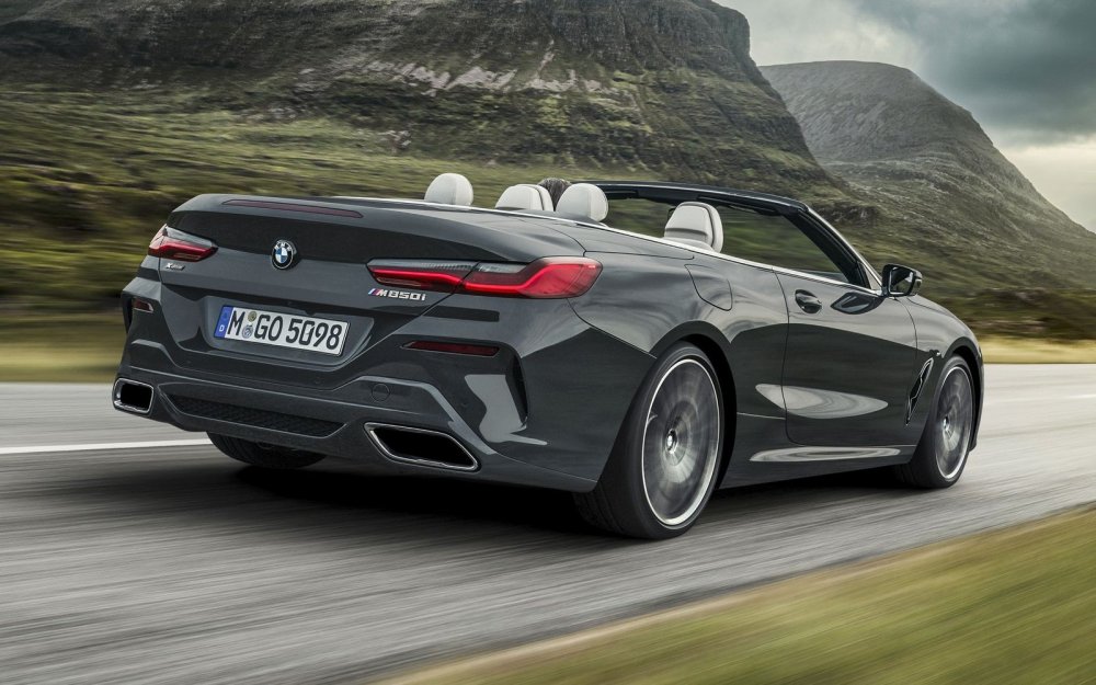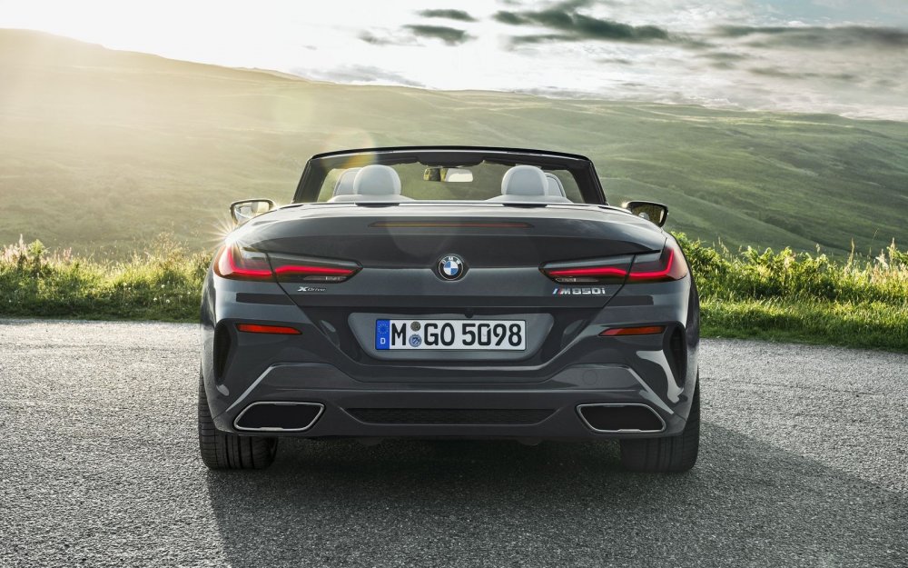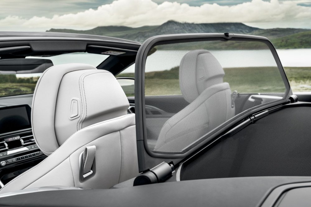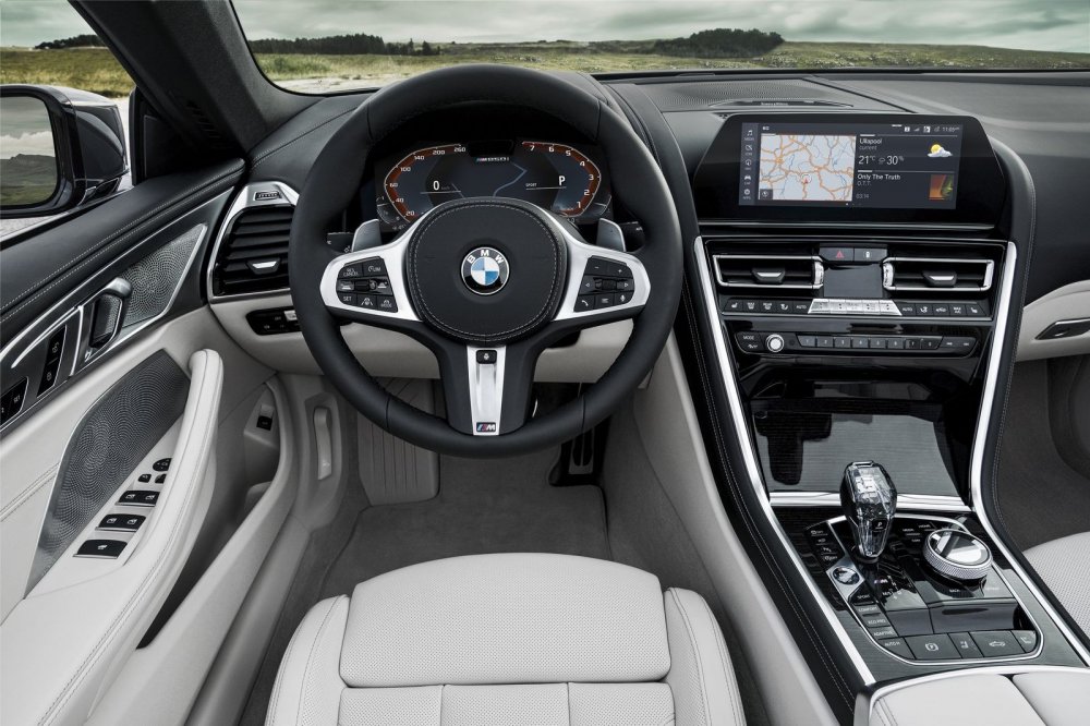 Кузов по сравнению с купе усилен дополнительными поперечинами и цельной панелью в днище: снаряженная масса составляет 2015 кг (у купе M850i xDrive – 1890 кг). За спинками сидений второго ряда скрываются мощные алюминиевые дуги, выстреливающие при опрокидывании автомобиля. Матерчатая крыша поднимается/опускается полностью в автоматическом режиме за 15 секунд на скорости до 50 км/ч и «отъедает» у багажника купе 70 л объёма: у кабриолета объем грузового отсека составляет всего 350 л, но для перевозки длинномеров спинки заднего сиденья можно сложить. Ветрозащитный экран входит в цену, а за подачу тёплого воздуха в шеи водителя и переднего пассажира придётся доплачивать. Аудиосистема Bowers & Wilkins и «хрустальные» элементы отделки, показанные на презентационных фотографиях, – тоже из списка опций.
