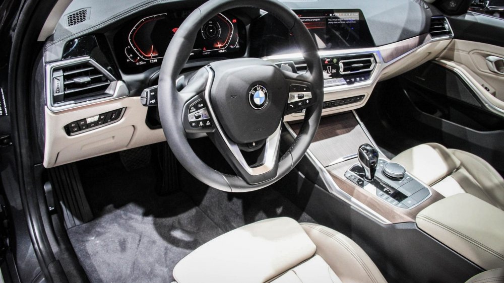 В интерьере «тройки» G20 нового немного – с учетом знания салонов современных BMW, конечно. Однако тенденция к унификации владельцев 3 серии может только порадовать: толстый руль – как у «пятерки», приборная панель и передняя панель схожи с теми, что мы недавно увидели на новом X5, и обновленный фиксированный «стик» автоматической коробки передач тоже узнаваем. Уже видны слезы на глазах М-драйверов, расстающихся с олдскульным рычагом ручного тормоза и не менее олдскульным вырезом для него в центральном тоннеле: теперь все так же строго, как и везде. Подлокотник симметричный, линии тоннеля – прямые, клавиши сгруппированы в единый блок, а единственная «фишка» — это перенос сюда же кнопки запуска двигателя.