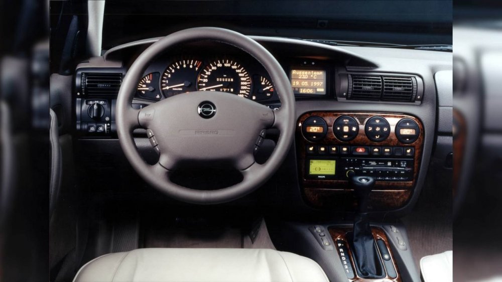 Сохранив немало общих элементов с салоном Омеги (первое фото), интерьер Catera стал всё же более «американским». Это подтверждает компоновка центральной консоли, например