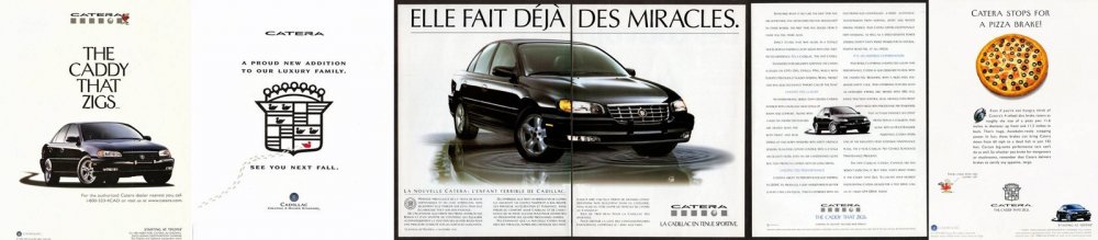 Откровенно сэкономив на создании автомобиля путём косметических правок Omega B, в Cadillac решили потратиться на шумную и недешёвую рекламную кампанию, которая проходила под слоганом "Кадди ездит зигзагами" (The Caddy that Zigs). Кроме новой модели автомобиля, её участниками стали супермодель Синди Кроуфорд и выдуманный анимационный персонаж – утка Зигги.
