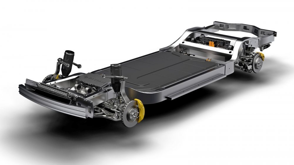 Платформа Rivian представляет собой раму лонжеронного типа с интегрированной в неё лити-ионной АКБ, и, скорее всего, похожая будет у нового Escalade, но с тем отличием, что её можно будет также использовать для автомобилей с традиционной силовой установкой, то есть для бензинового двигателя и автоматической коробки передач.