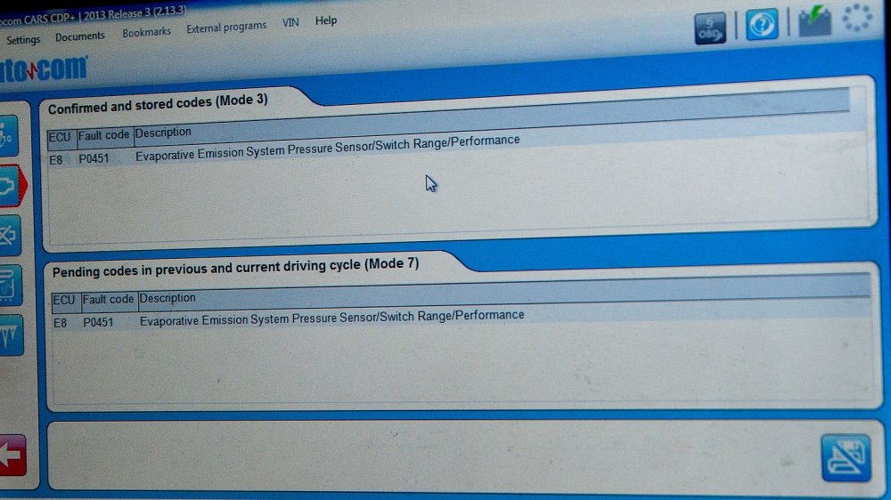 Главное, что подключается он быстро. Интерфейс его понятен, но что этот прибор может? Сначала попробуем быстренько прочитать ошибки (ведь это, наверное, первое, что захочет сделать счастливый обладатель сканера). И Launch их находит, точнее – одну: «выход за диапазон сигнала датчика давления паров адсорбера» (код Р0451, орфография сохранена).