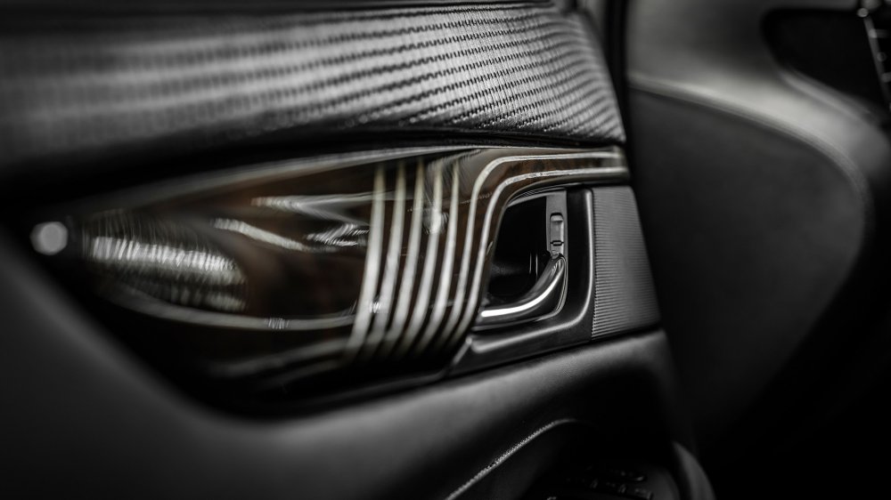 В оформлении салона автомобиля используется несколько видов черной кожи и лакированное элегантное дерево темно-коричневого оттенка с декоративными полосками. Несмотря на выбор единственного черного цвета кожи, специалисты ателье смогли избежать однообразия с помощью сочетания нескольких типов текстур, матовой и глянцевой поверхности, а также прострочки.