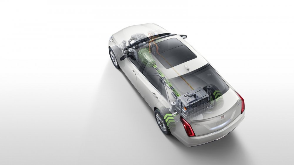 Запас хода гибридного Cadillac CT6 на одной электротяге составляет 48 км. При использовании комбинированной энергии ДВС и аккумуляторов, автомобиль может преодолеть расстояние свыше 640 км на полном баке.