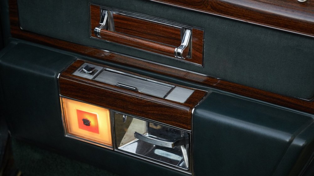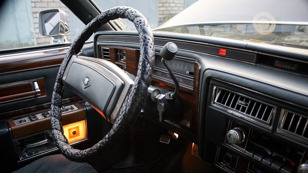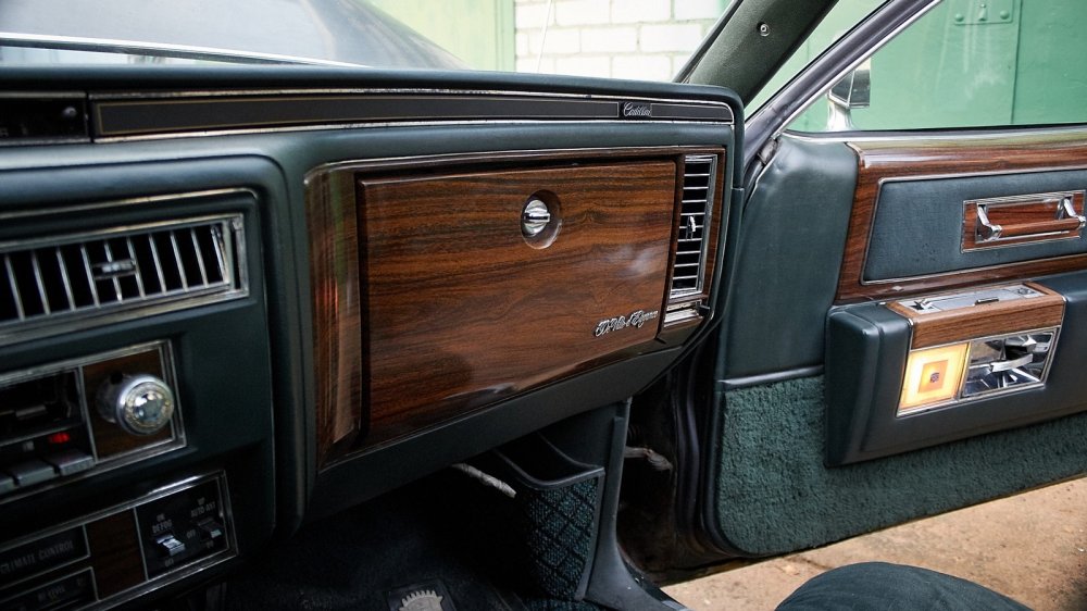Пережив первый ностальгический приступ, изучаю салон подробнее. На месте переднего дивана утвердились два независимых друг от друга кресла – опция, которую в 1978 году было необходимо подтверждать на стадии заводской сборки. Панель торпедо радует грамотной оптимизацией: все водительские приборы удобно скомпонованы слева, медиакомплекс разместился по центру. Тут собран максимум удобств, который Cadillac мог предложить на момент выпуска данного авто. Уже упомянутая мной комплектация d’Elegance включает в себя такие опции, как автоматическая подсветка салона, электроантенна, обдув задних стекол, кондиционер с функцией климат-контроля, 8-позиционная регулировка сидений и кнопка управления багажником. В дверные карты интегрированы персональные электропульты, управляющие стеклами и прикуривателями (по одному на каждого пассажира). За музыку отвечает радиоприемник с плеером Stereo 8 – единственный элемент из базового наполнения модели.