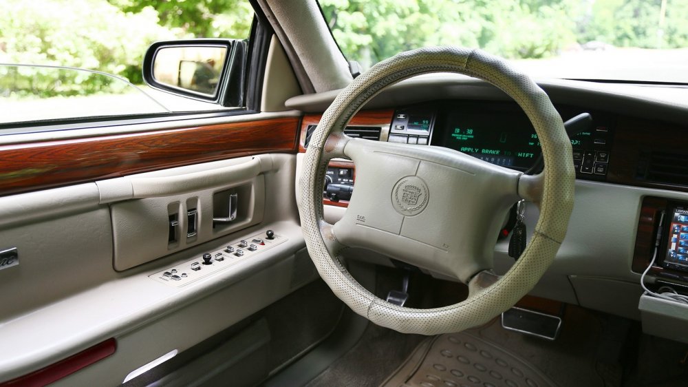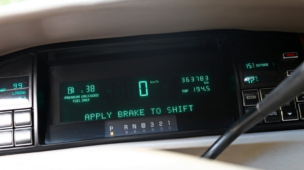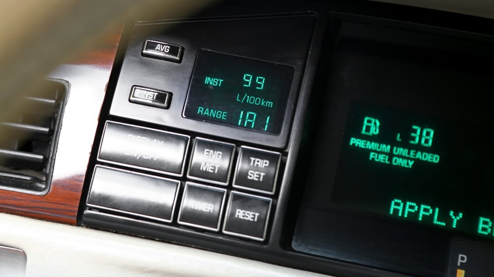Панель приборов – разумеется, электронная. Да, в Европе в 90-е годы это смотрелось приветом из 80-х, но в США консервативный покупатель всегда склонен к легкой ностальгии, так что «калькулятор» пришелся впору. Любопытно, что с помощью рычажка на консоли можно переключать режимы работы: с американских миль в час до привычных нам километров.
