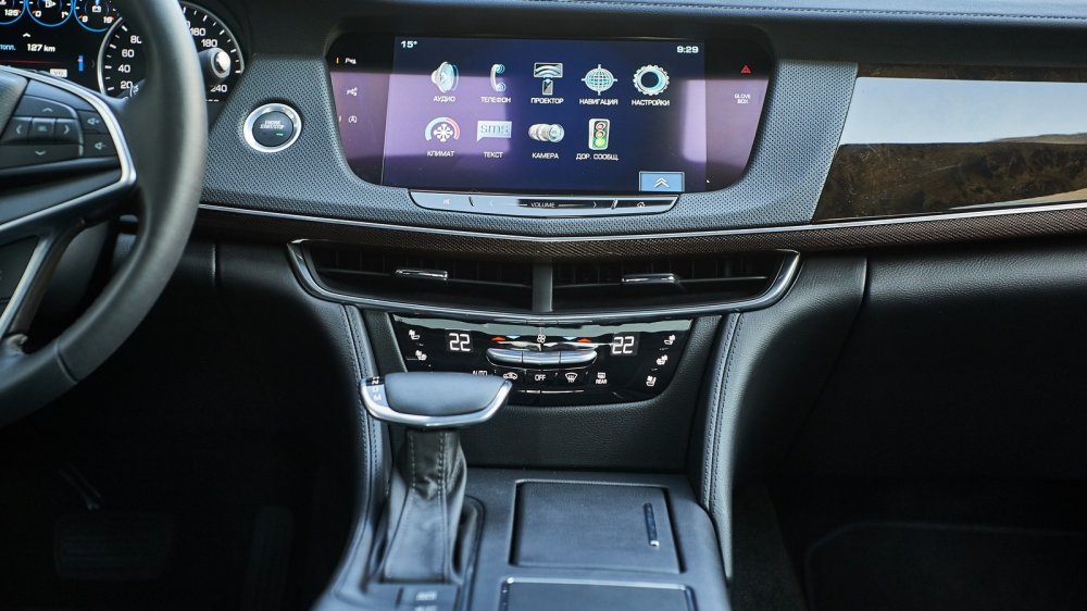 Однако заняв место за рулем СТ6, понимаешь, что первое впечатление — обманчиво. Эргономисты Cadillac действительно постарались сделать управление и приборы максимально лаконичными и понятными, но насыщенность автомобиля высокими технологиями воистину впечатляет.