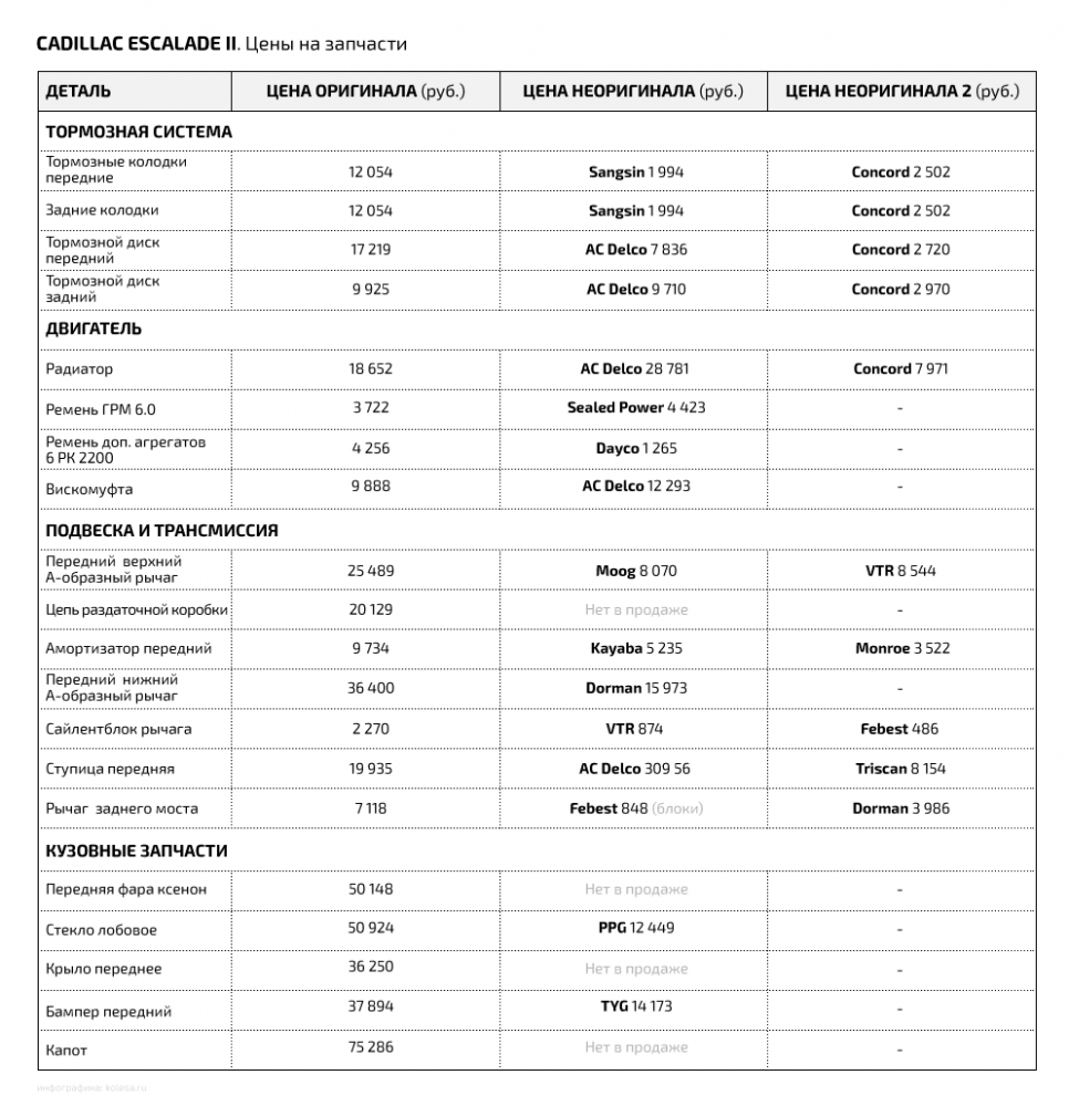 Как и многие американские авто, оригинальный Escalade антикоррозийной стойкостью не отличается. К счастью, многие машины собирались уже в Калининграде, а большинство поставляемых официально авто обрабатывали антикором достаточно тщательно. Машины из Германии и Швеции обычно тоже имеют явные следы тщательной обработки.
