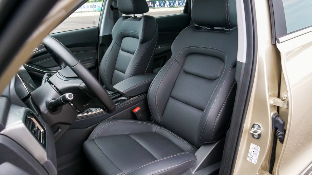 Откатав два круга, заруливаем обратно в боксы, чтобы поближе познакомиться с интерьером. Внутренне убранство у китайцев вышло, прямо скажем, приятным: ненавязчивая асимметрия передней панели, удобные кресла, обитые перфорированным кожзамом (с подогревом, но без вентиляции), мягкие пластики с имитацией прострочки… Не обошлось, конечно, и без ляпов – ляпов пальцев на «хромированных» окантовках центрального тоннеля и клавиш рулевого колеса, которые выглядят здесь излишними. Эстеты могут придраться к разношерстности фактуры материалов отделки: на передней панели вставка из блестящего пластика «под алюминий», а вокруг рычага коробки передач – матовые псевдодеревянные вставки. Но зато ничего не скрипит, не гуляет при нажатии и не шумит при движении.