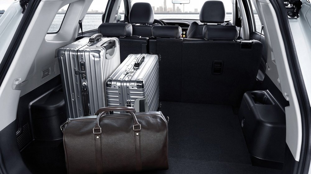 Багажник семиместной версии при разложенных сиденьях третьего ряда – повод для расстройства. Если в том же «референсном» Santa Fe остается 328 литров, то здесь – всего 192, да и то при расчете загрузки под самый потолок. В реальности же сюда войдет лишь пара рюкзаков или одна спортивная сумка. Однако если пассажиров будет не более пяти, то можно «дернуть за веревочку» и толкнуть спинки двух задних кресел вперед, освободив уже почти 900 литров пространства, как в двухрядном исполнении. Сложив же виденья второго ряда, до потолка можно «налить» 1 930 литров.