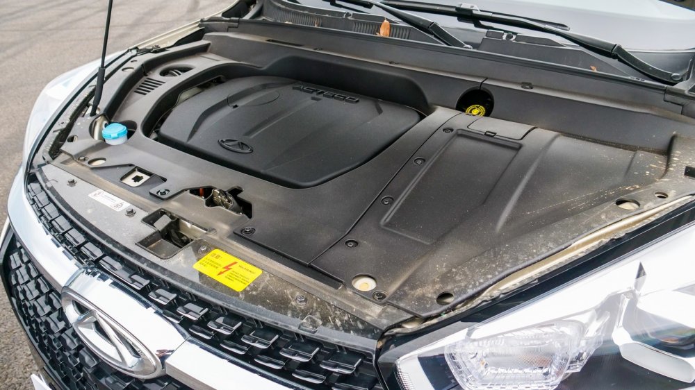 Одна из «загадок», которые скрывал в себе старший из линейки Tiggo – это то, насколько ему будет хватать турбомотора объемом всего в 1,5 литра. Ведь он играет на том же поле, что и, к примеру, новый Hyundai Santa Fe: «китаец» проигрывает 7 сантиметров в общей длине (4 770 мм против 4 700) и 5,5 в колесной базе (2 765 мм против 2 710), но в целом предлагает те же опциональные 7 мест в салоне и приличный багажник с возможностью трансформации. Вот только в то время как «корейцы» предлагают бензиновый мотор объемом 2,4 литра и 2,2-литровый дизель (а родственный Kia Sorento Prime – еще и 3,5-литровый бензиновый V6), в Tiggo вариант один: это 1,5-литровый турбированный моторчик SQRE4T15B, на который возложены надежды китайского народа (если не всего, то по крайней мере тех, кто покупает машину). Агрегат достаточно современный – он имеет фазовращатели на впуске и выпуске, соответствует нормам Евро-6 и выдает 147 л.с. Кстати, привод ГРМ здесь цепной – хотя вряд ли это можно считать большим плюсом при таком рабочем объеме и, соответственно, нагрузке: несмотря на то, что "на бумаге" пик момента начинается с 1 750 об/мин, крутить мотор все равно приходится, и легкую жизнь цепи ничего не сулит.