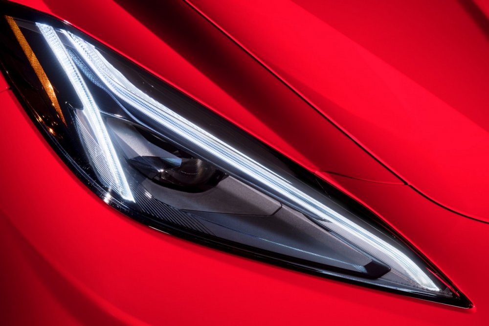 В уроне оснащения и качестве отделки интерьера Corvette, по словам разработчиков, совершён настоящий прорыв. Большое внимание уделено мелким деталям и материалам: голого пластика почти нет, всё покрыто кожей, замшей, металлом или карбоном. Руль оквадратили, чтобы сквозь него хорошо был виден виртуальный 12-дюймовый щиток приборов, и снабдили подогревом. Справа от руля – планшет новейшей мультимедийной системы с голосовым управлением. На центральном тоннеле – шайба выбора режимов работы ездовой электроники и кнопки управления трансмиссией. Наиболее любопытная деталь салона – ребро, разделяющее водителя и пассажира, на торце которого разместились мелкие кнопки климат-контроля – не факт, что пользоваться ими во время движения будет удобно. На выбор – три вида кресел: базовые комфортные GT1, продвинутые GT2 c множеством регулировок и более богатой отделкой, трековые Competition Sport с наиболее развитой боковой поддержкой. Между спинками сидений есть специальный слот с беспроводной зарядкой для смартфона. Опциональная аудиосистема Bose Performance имеет аж 14 громкоговорителей (в базе «всего» 10).