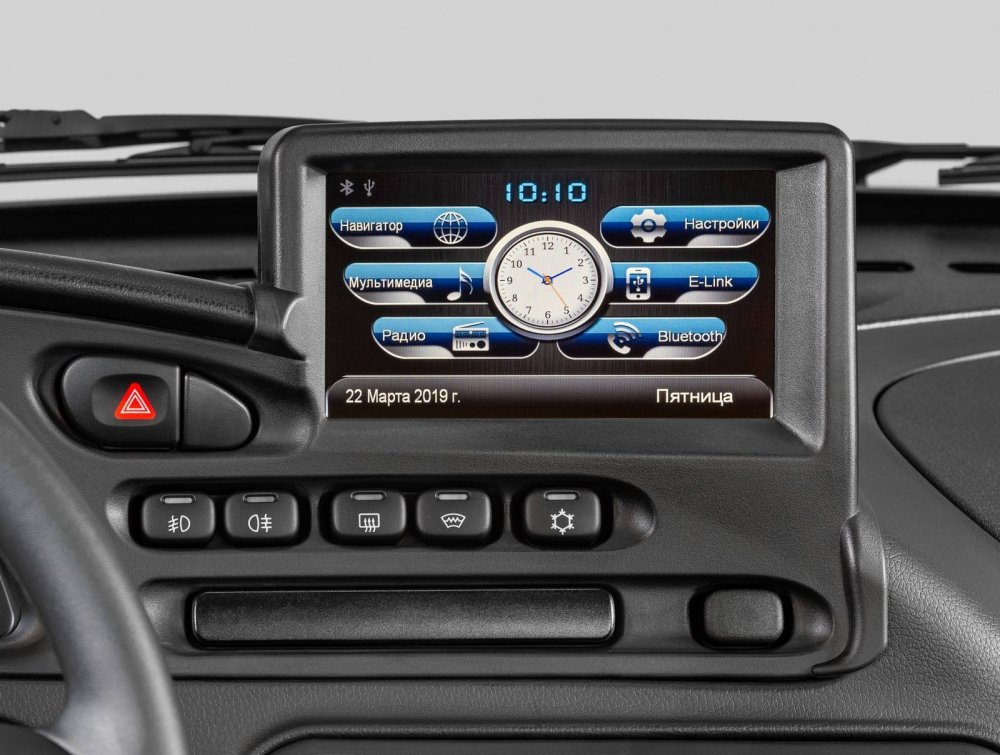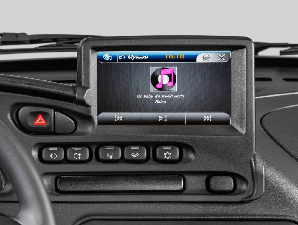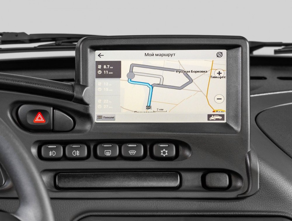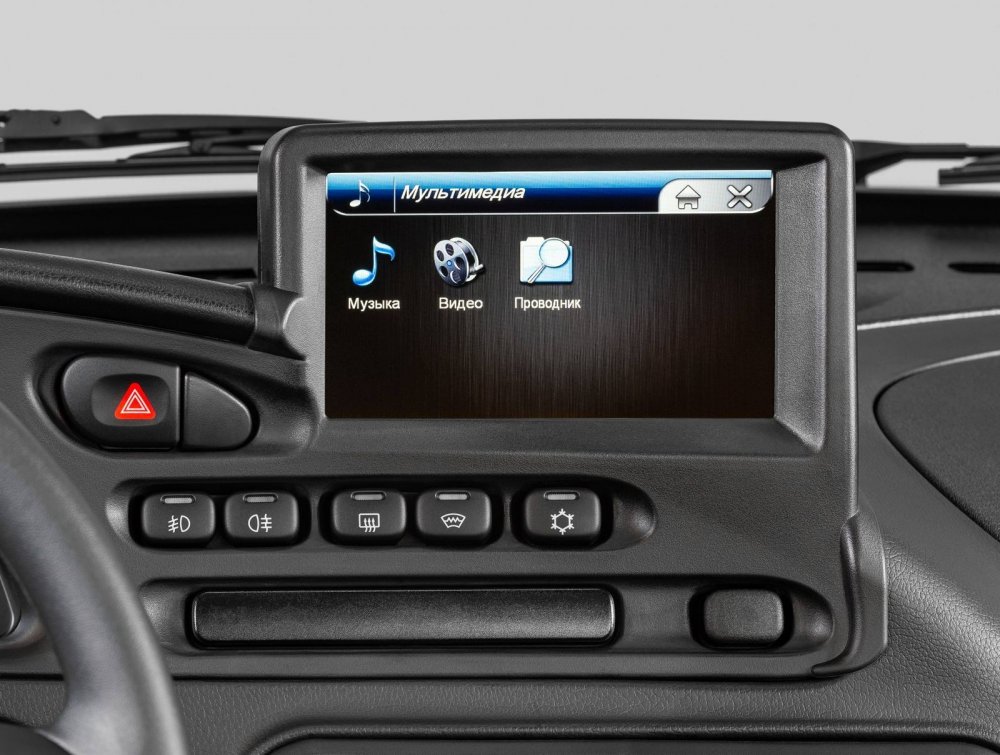 Итак, штатное головное устройство теперь двухкомпонентное и его верхняя экранная часть представляет собой нахлобучку поверх козырька щитка приборов. Выглядит эта надстройка, прямо скажем, не очень изящно, зато завод освоил мультимедийную систему с минимальными затратами и с потребителя за неё много не просит. Новая «музыка» доступна в комплектациях LEM и GLC Multimedia, обе стоят 810 тысяч рублей, а различия между ними, по сути, сводятся лишь к оформлению.