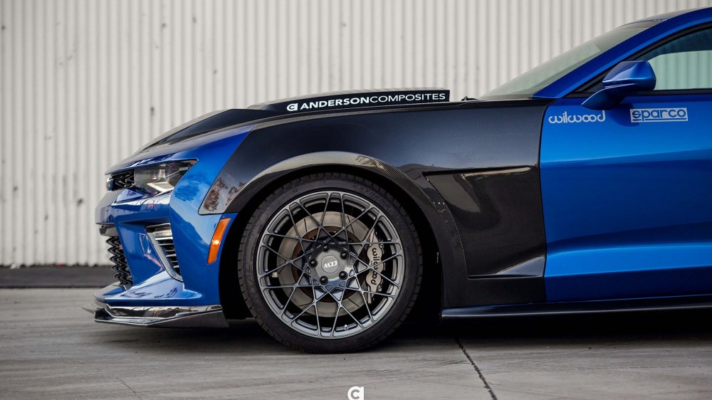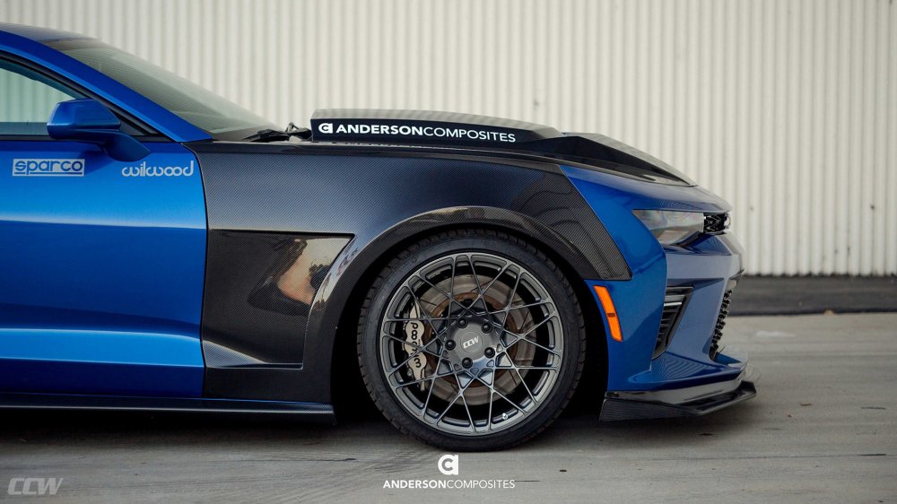 Замена стоковых элементов кузова Chevrolet Camaro SS на альтернативные от Anderson Composites позволила снизить массу спортивного купе, правда, на сколько именно, не сообщается. Автомобиль получил карбоновый капот, передние сплиттер и крылья, пороги, а на корме установлен спойлер, диффузор и подложка для номерного знака.